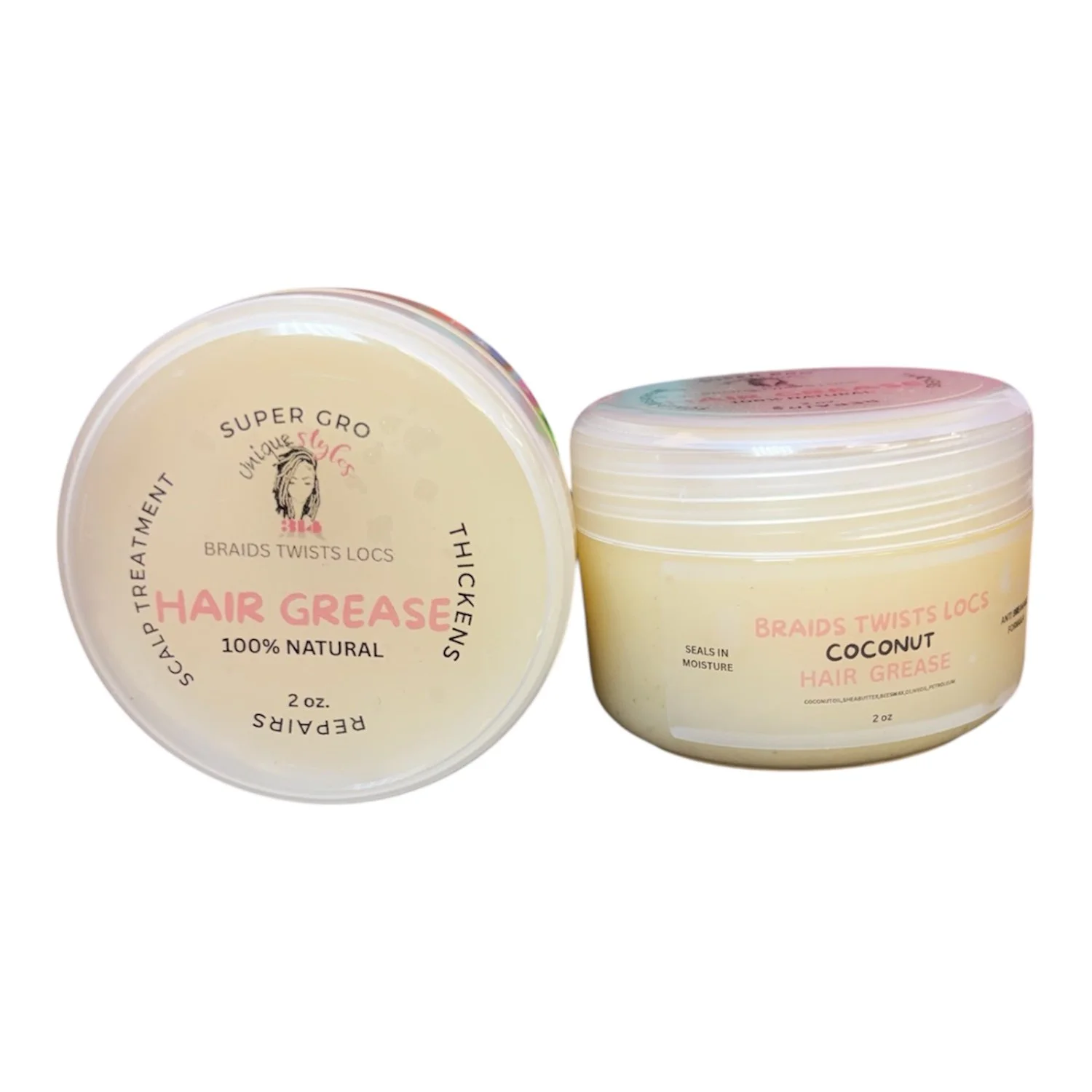 Rose Hair Growth Grease blends nourishing coconut oil and rich shea butter to help strengthen hair and support healthy growth. It deeply moisturizes the scalp, seals in hydration, reduces breakage, and promotes thicker, softer, more manageable hair with a smooth rose finish.